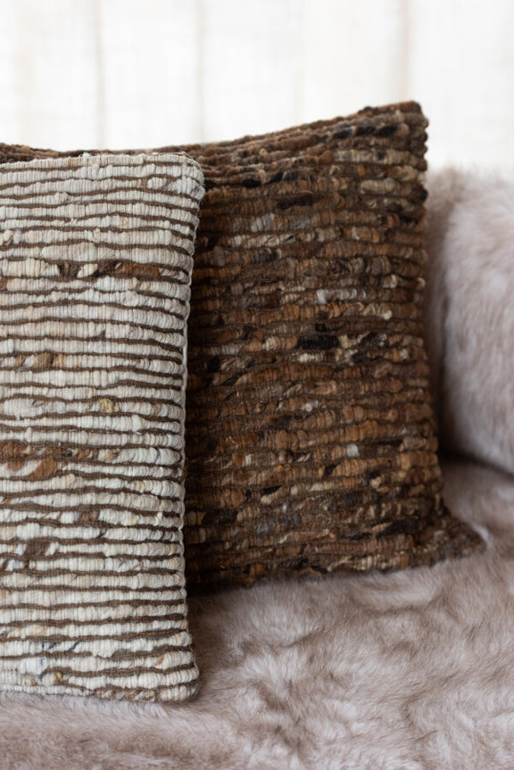 COUSSIN TISSÉ LAINE MARRON 45x45cm