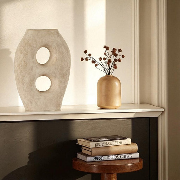 Vase en terre cuite ajouré coloris argile 20x8xH27 cm